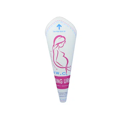 Produzido em papel descartável e a prova d´água, este discreto produto em forma de funil, permite que mulheres possam urinar em pé em banheiros públicos ou com baixa higienização, evitando o agachamento ou mesmo se sentar em vasos sanitários, proporcionando maior higiene e segurança.